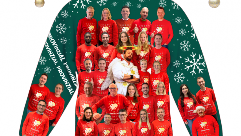 Nachdem wir im vergangenen Jahr eine Limited Edition rausgebracht haben, konnten dieses Jahr alle Personen im Konzern den Pulli bestellen. Unser Pulli ist daher eine Hommage an den Gewinner-Pulli aus 2021 und 2022 – dieses Mal mit unseren Mitarbeiter:innen und einem neuen Schutzengel. Schließlich kann auch ein Ugly Christmas Sweater die besten Kolleg:innen nicht entstellen.